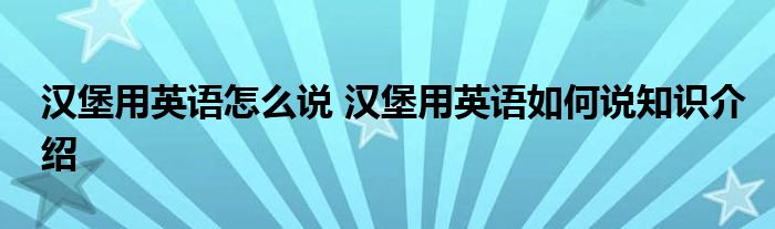 汉堡用英语怎么说 汉堡用英语如何说知识介绍